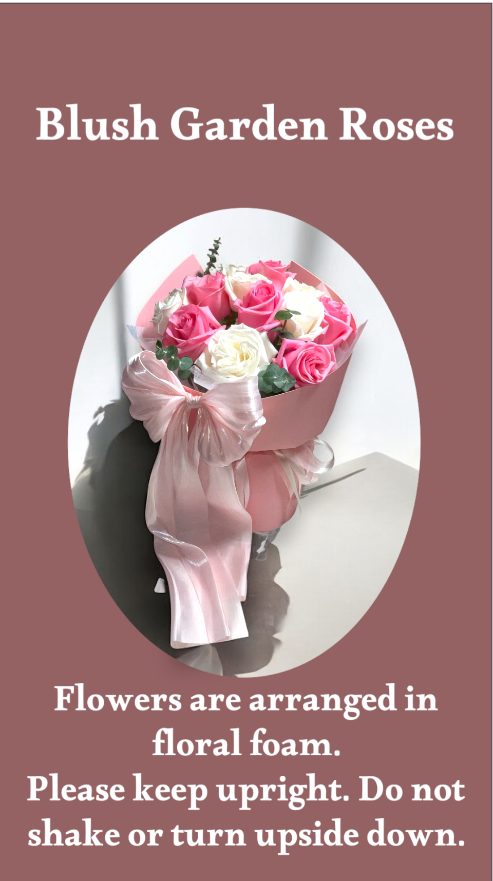 Please keep the bouquet upright at all times.