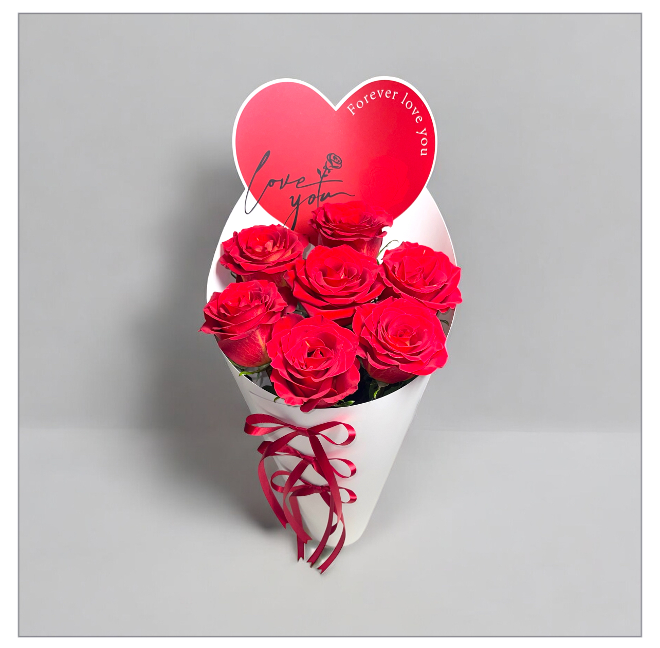Forever Love Roses is a romantic Valentine’s Day flower arrangement designed to express deep love and affection. This bouquet features premium red roses, beautifully arranged in a modern white decorative box and accented with a heart-shaped topper and elegant red ribbon.