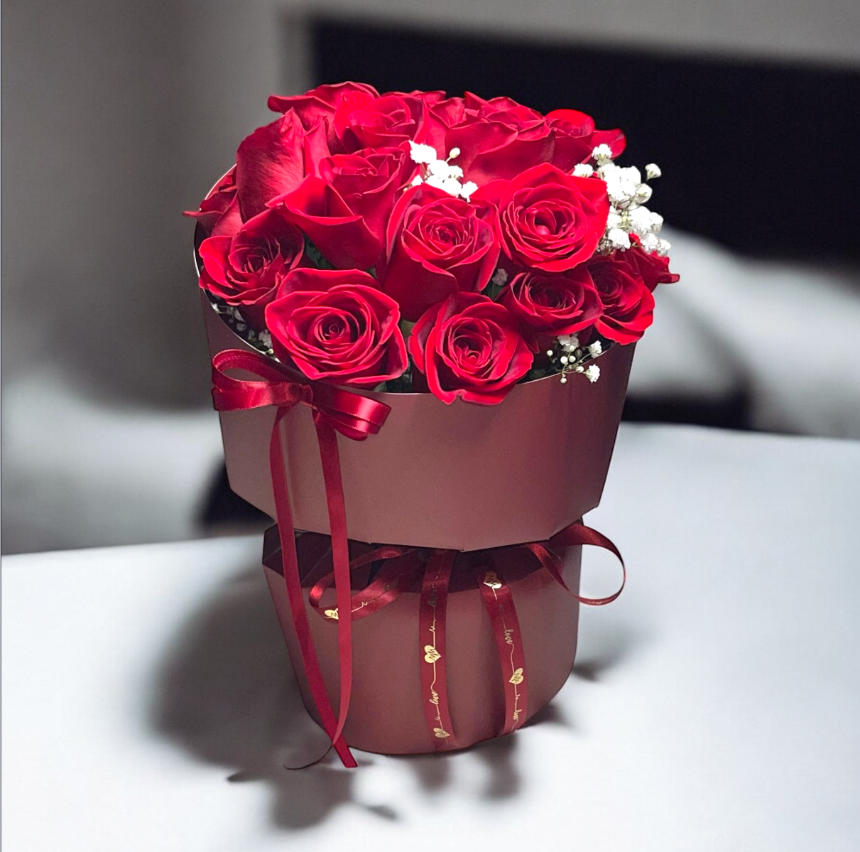 So Sweet 2 Dozen Roses is a stunning floral arrangement featuring two dozen premium red roses, carefully designed in a stylish hat box for a full, rich, and impressive look. Soft accents and elegant details add a romantic and refined touch, making this bouquet truly unforgettable.